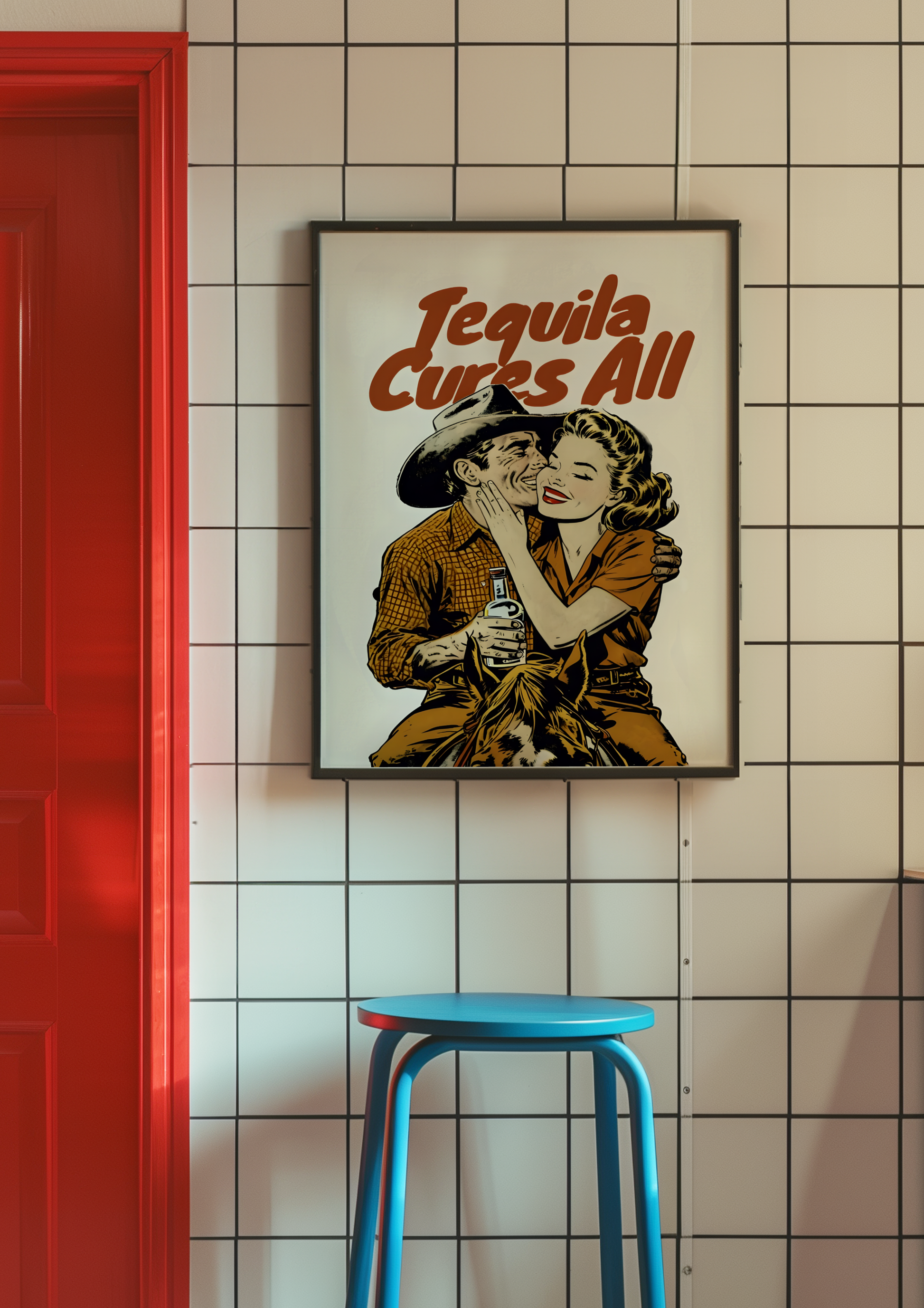 Celebrate love, rebellion, and a splash of tequila with this bold, vintage-style poster. Tequila Cures All! Perfect for bars, home lounges, man caves, or anyone who knows that the right drink and the right person can fix just about anything. This piece brings a touch of romance, grit, and cowboy charm to any wall. Cheers to good times and even better company.
