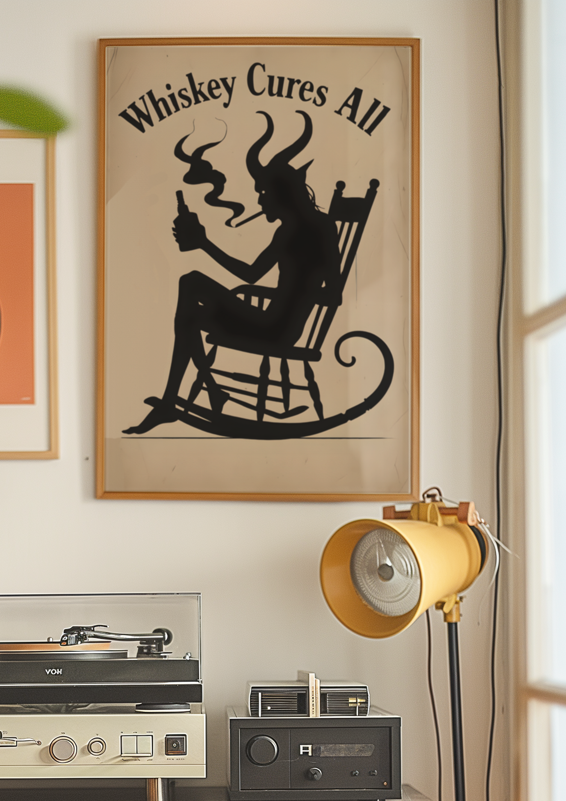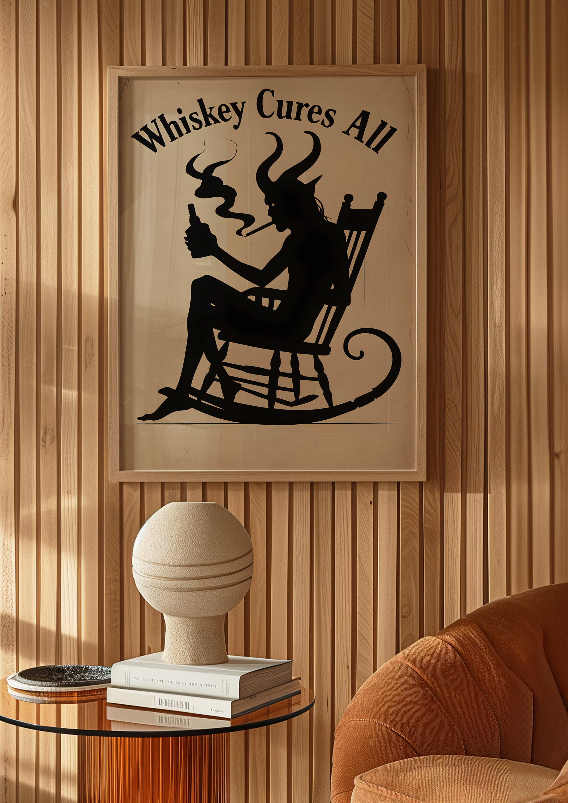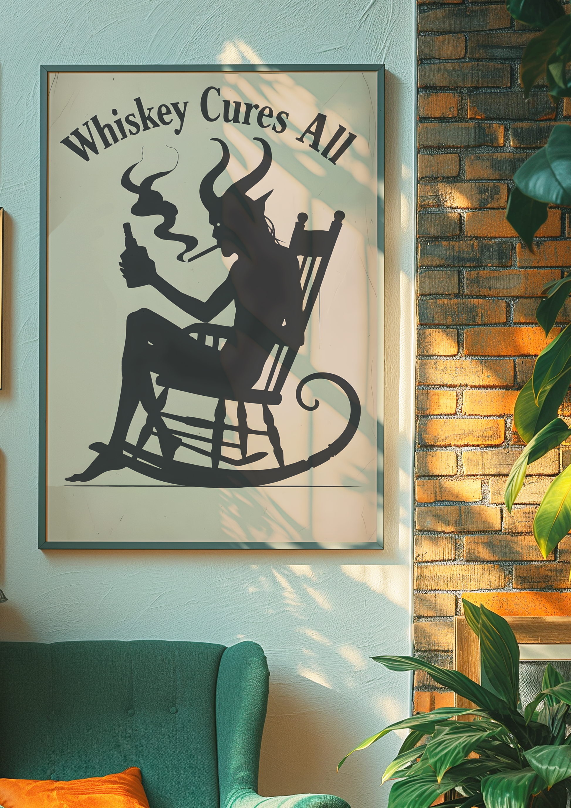 Add a wicked twist to your space with our "Whiskey Cures All" poster, featuring a devilish demon lounging in a chair, drink in hand, exuding calm chaos. With smoke curling from his glass and a sly grin on his face, this moody and mischievous artwork is a toast to those who embrace the darker delights of life.