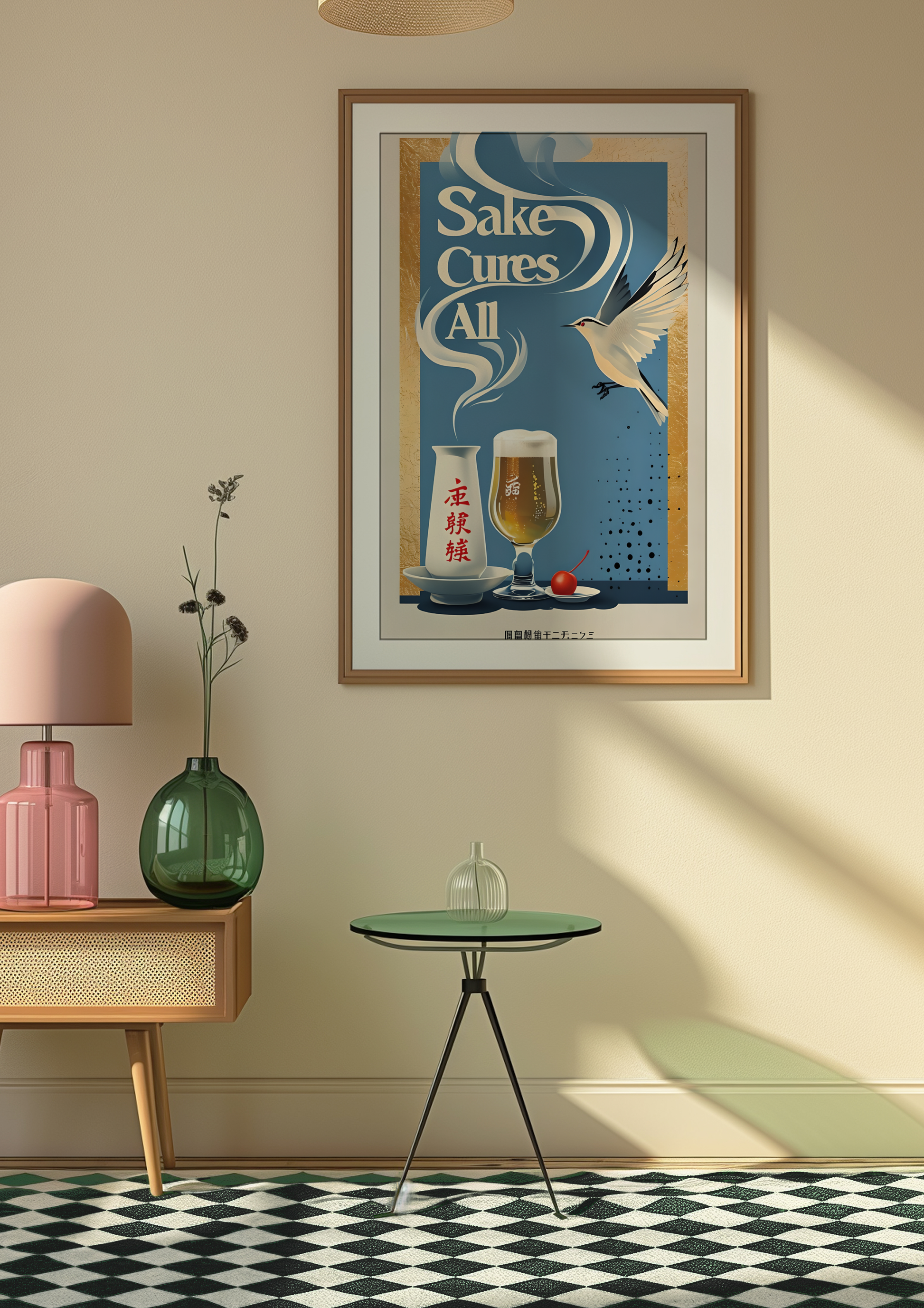 Calm, clean, and quietly powerful — our "Sake Clears All" poster brings balance to your walls with a serene image of a steaming bottle of sake next to a chilled beer, side by side in perfect harmony. With minimalist lines and a soft, earthy palette, this piece channels the soothing ritual of a warm pour and a cool sip, perfect for clearing the mind and easing the moment.